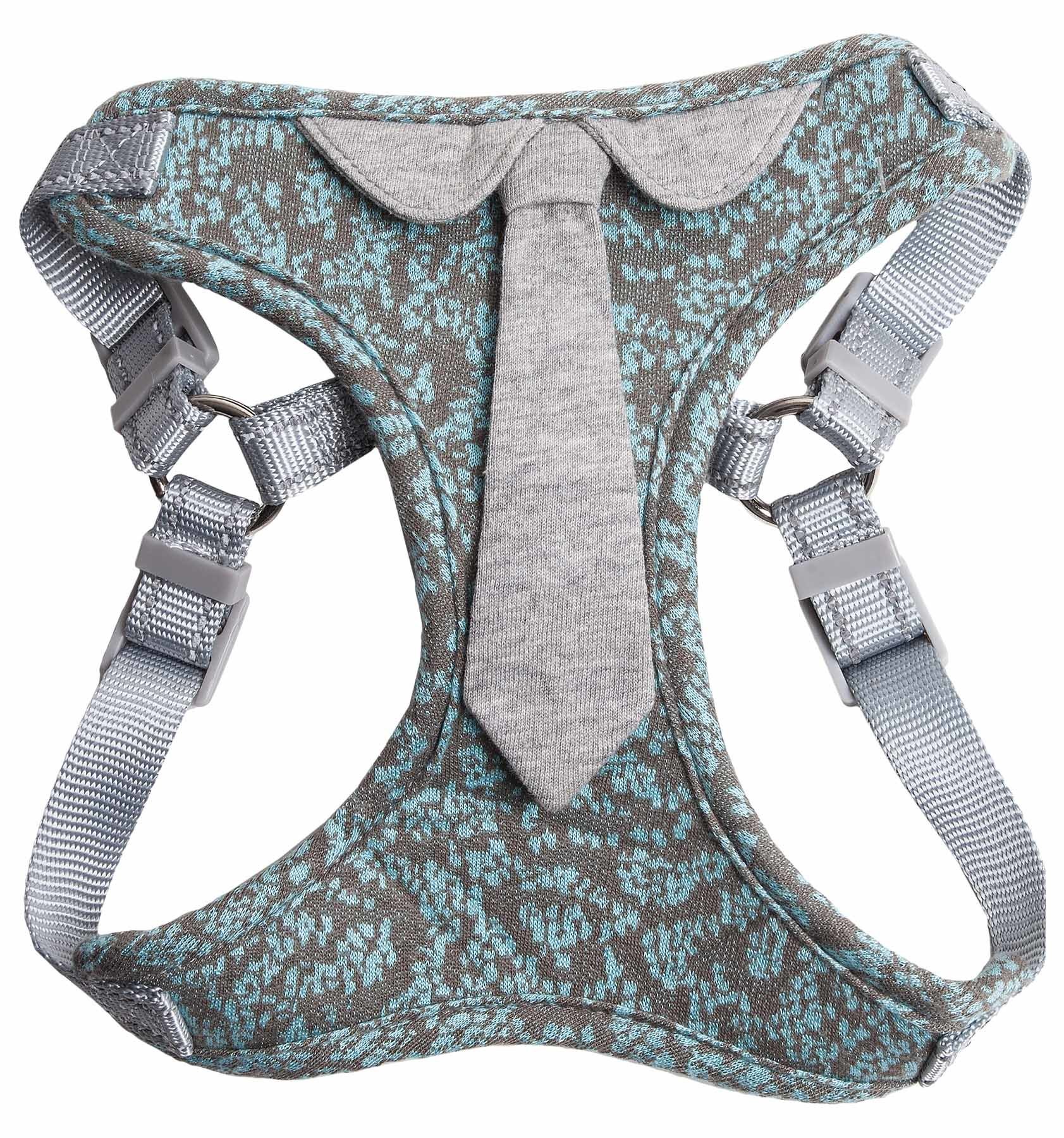 The Pet Life 'Fidomite' Mesh Reversible and Breathable Adjustable Dog Harness w/ Designer Neck Tie features a blended exterior shell with complete breathability that is reversed with breathable and comfortable accented Micro-mesh for premium comfort that gently hugs the body. The Harness features well-coordinated exquisite silver neck tie that sits above a stunning Gray and Blue patterned body. The back of the harness features adjustable Mesh and Nylon straps with dual stainless steel hooks that connect to any leash. The Swanky Swag harness was specially engineered to limit stress around the stomach by placing light stress around the sternum for proper comfort. Features reinforced stitching for durability. Available in Multiple Sizes.