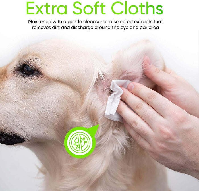 Extra soft cloths moistened with a gentle cleanser and selected extracts that removes dirt and discharge around the eye and ear area. daily use to help reduce tear stains and prevent eye infections from occurring and removes dirt; wax; and discharge found around the ears to help prevent odor; itching; and irritation that can cause infection.