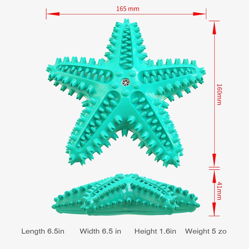 This toy is made of environmentally friendly and non-toxic rubber material that is safe to use and also has good resistance to bites and wear. Its shape is a cute starfish that is perfect for dogs to chew and grind their teeth on. Additionally, when the dog plays with the toy, it produces a crisp sound that attracts the dog's attention and interest, increasing its activity and intelligence.
