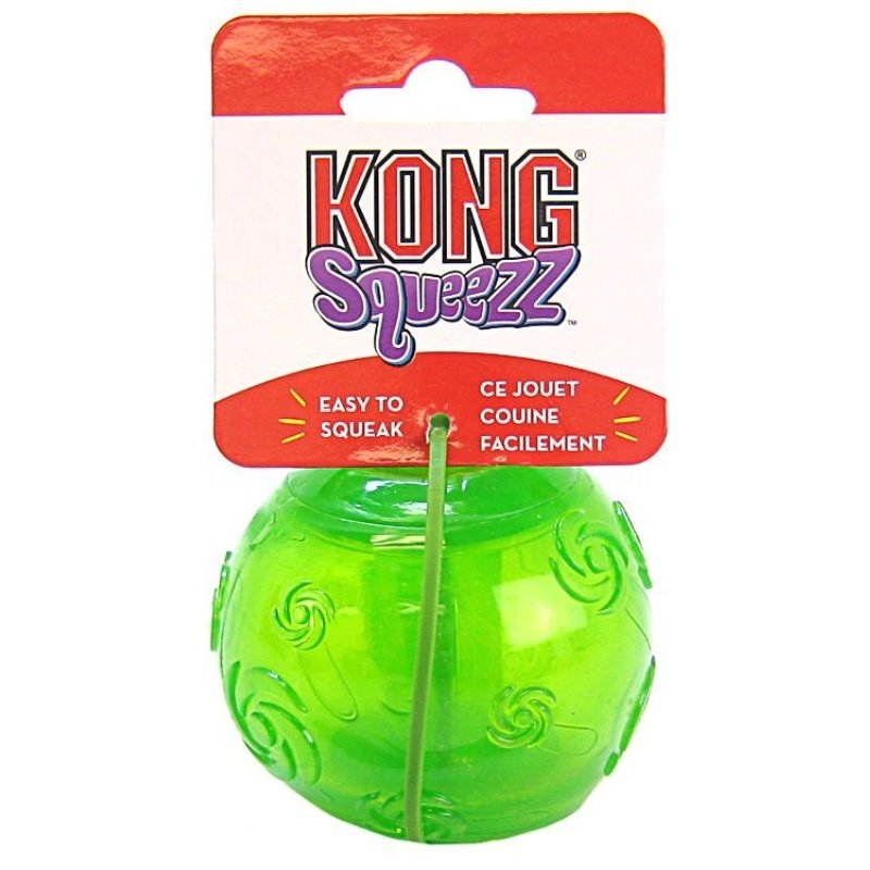 KONGs Squeezz Ball Dog Toy features a completely safe, durable, non-toxic rubber. With a protected recessed squeaker inside of the ball that your dog can't get to, the fun won't stop in the first day like it might with other toys.