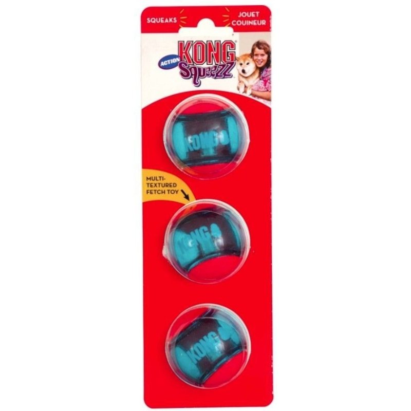 KONG Squeezz Action Ball is a vibrantly colored, multi-textured ball with a wild bounce that your pal will sure to love chasing after. Built for chewing and chomping your dog will be even more excited for play when he hears the squeaker that is safely embedded within the toy