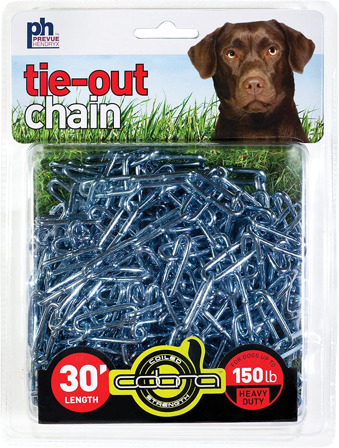 Prevue Pet Products medium-duty 30Æ tie-out cable 2121 is designed for dogs up to 65 lbs. Medium duty, galvanized aircraft-grade wound-steel cable is housed within crack-resistant, high visibility Red vinyl casing to ensure your dog stays safe and secure. Premium quality die-cast iron swivel bolt snaps at both ends to connect easily. Medium duty tie out cable is 30 foot long with a 3.3 mm diameter wire cable; 4.8 mm in vinyl casing.