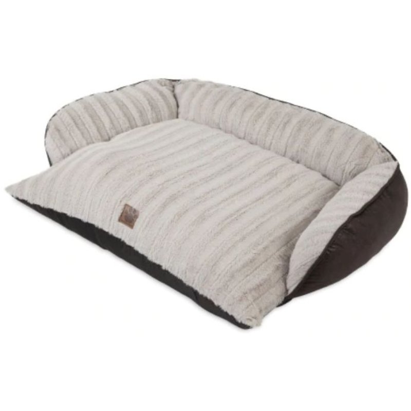 Precision Pet Snoozzy Rustic Luxury Pet Couch is a comfortable, warm place to snooze for your pet. Designed like a piece of furniture, this bed features a sofa silhouette with supportive bolsters on three sides for your dog to rest their head on or cuddle up to and keep warm. A soft, cream-colored sculpted plush fabric covers the entire sleep surface, while the outer part of the bed is wrapped in a dark brown, faux leather that adds warmth to any room in your home. It is ideal for medium to large-sized dogs who like to stretch out or curl up while they snooze. As your dog gets in and out of the bed, the non-skid bottom keeps the bed in place on any floor type. To keep your dogs area fresh, the Comfy Couch has a removable, machine washable outer cover.